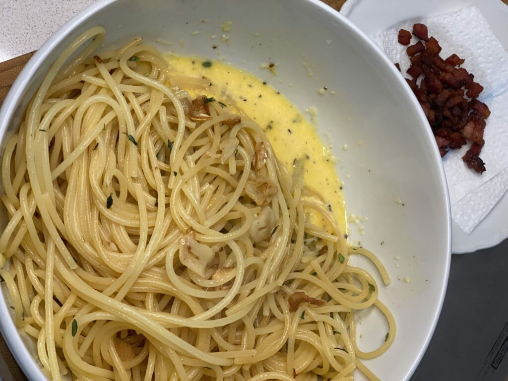 - Spaghetti Carbonara sollte immer auf den Punkt zubereitet werden, da es schnell kalt wird. Und bitte lasst euch durch die rohen Eier nicht davon abhalten, dieses Rezept zu probieren. Es lohnt sich!!